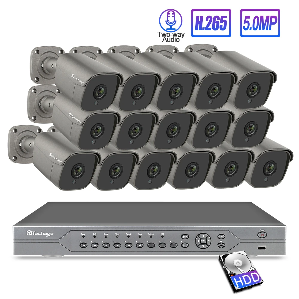 Techage 16CH 5MP 48V H.265 POE NVR Security System AI POE IP Camera 2-Way Audio MIC Speaker Onvif C